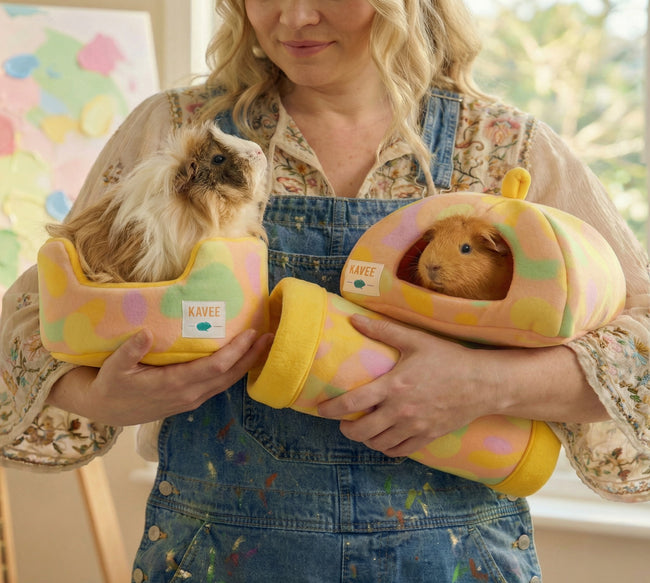 We love curious guinea pigs. Encourage expression and exploration with the Pigcasso V2 fleece tunnel. Crafted from premium velvet-feel fleece, this single tunnel is soft, cosy and perfectly sized for guinea pigs to run through or nap inside. Finished in the Pigcasso V2 colourway with a bright orange lining so it sits beautifully in their home and yours. It’s limited edition colour and comfort for the most playful of guinea pigs.